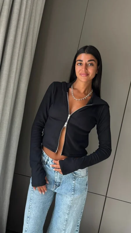 26/T77 – TOP M/L BUCHE MANGA OXFORD – ENCAJE STRASS