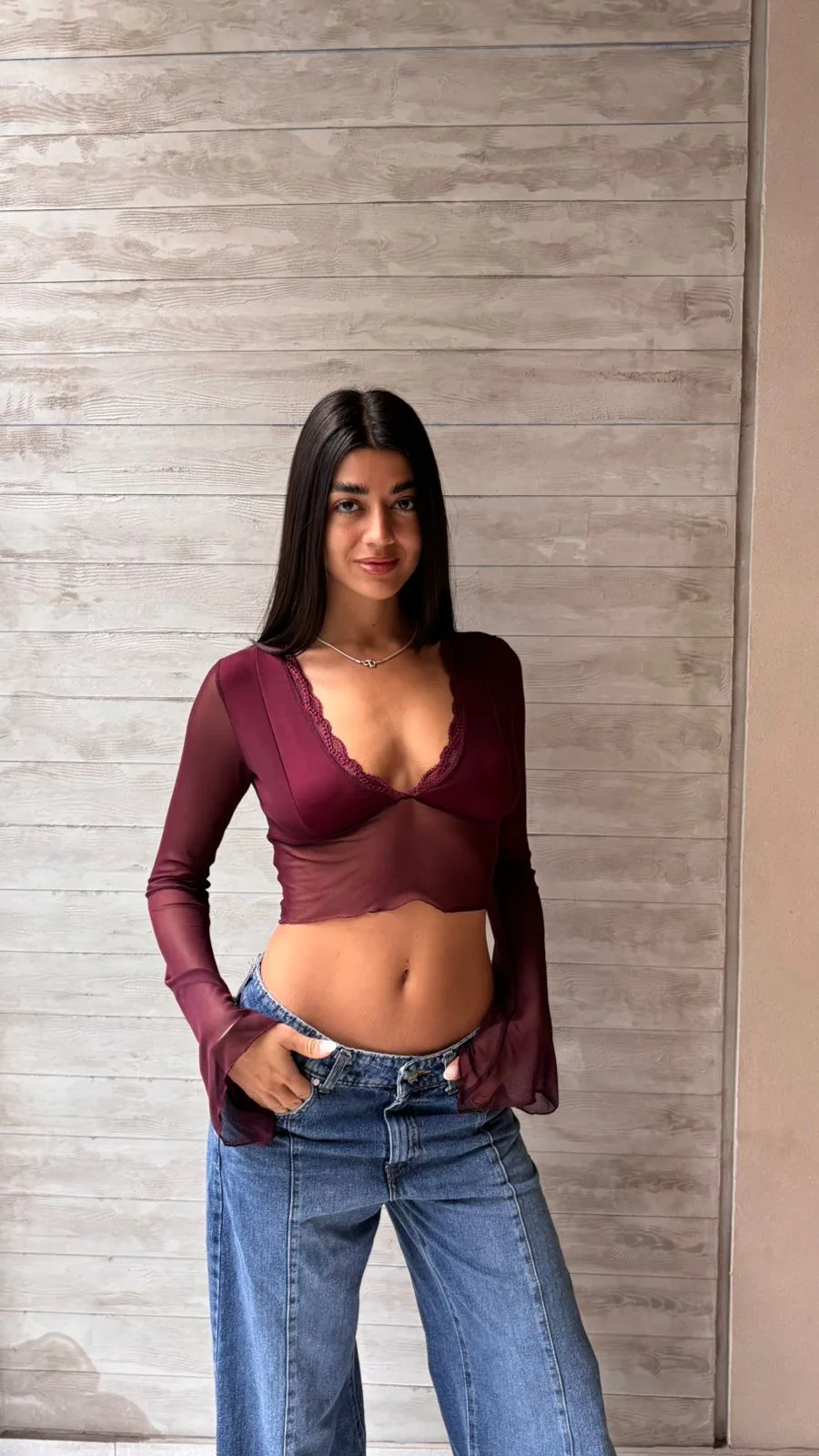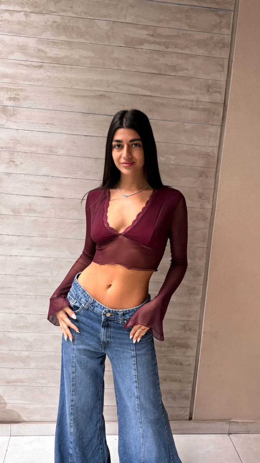 26/T78 – TOP M/L ESCOTE V PUNTILLA MANGA OXFORD – MICROTUL